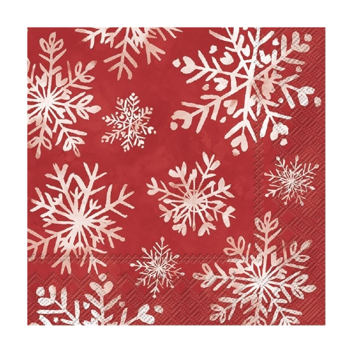Χαρτοπετσέτα Χιονονιφάδες σε κόκκινο φόντο 33 x 33 (Τεμ)