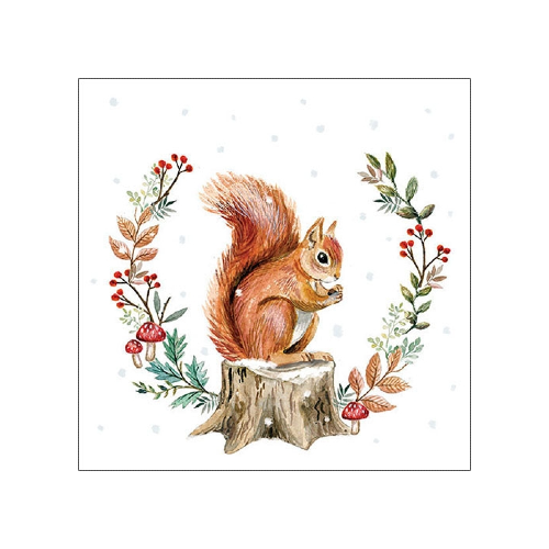 Χαρτοπετσέτα Σκίουρος και χριστουγεννιάτικο στεφάνι 33 x 33 (Τεμ)